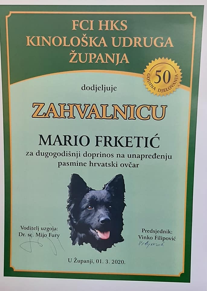Izuzetno mi je drago da mogu pohvaliti i naše kolege uzgajivače Ljupka Marinčića, Roberta Filipovića, te Marija Frketića koji su dali i svoj osvrt na 50. godišnjicu obilježavanja pasmine hrvatskog ovčara u časopisu „MOJ PAS“.